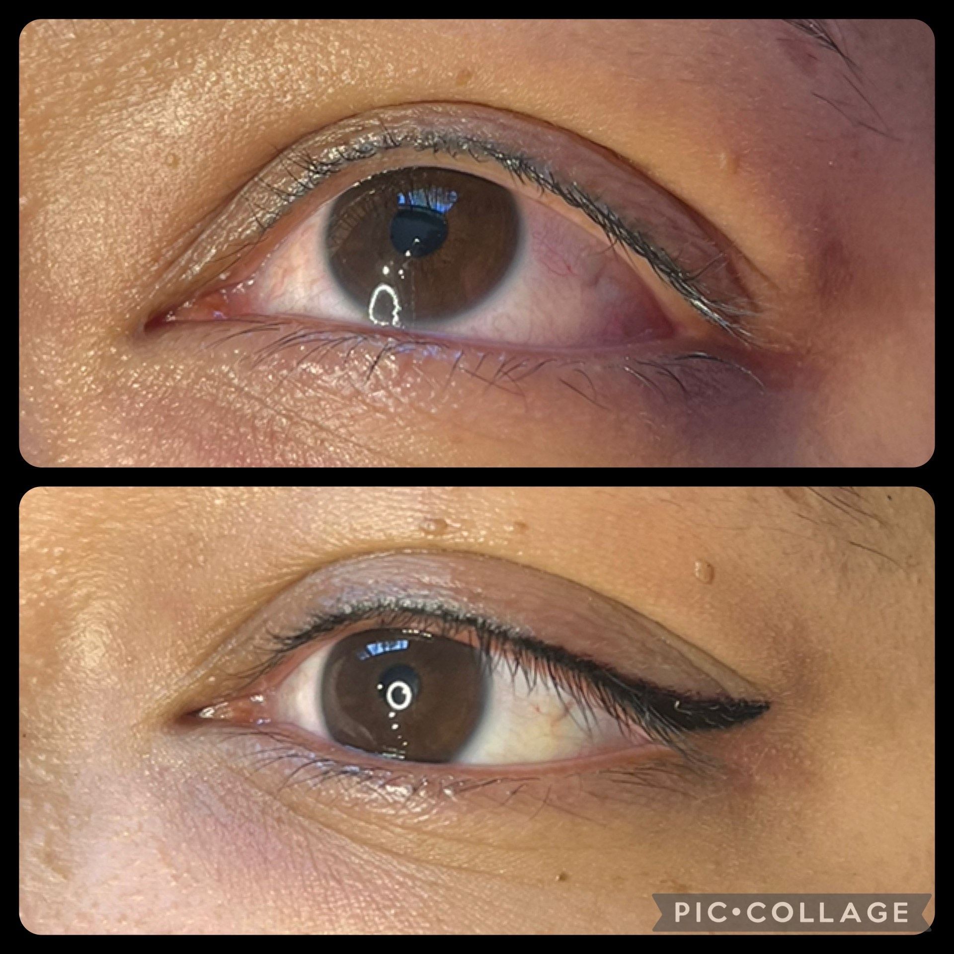 Her ser man liner oppe uten vipp, man kan få den avsluttningen man ønsker og man kan ta det steg for steg. Noen begynner med en enkel liner først og utvider med bredde og vipp etterhvert.